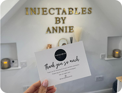 Want to grow your skills or enter the world of aesthetics? Annie offers private, CPD-accredited training in her Maidstone clinic. You’ll receive expert instruction, hands-on practice, and real-world business advice in a safe and supportive setting. Perfect for both beginners and experienced practitioners looking to elevate their technique.